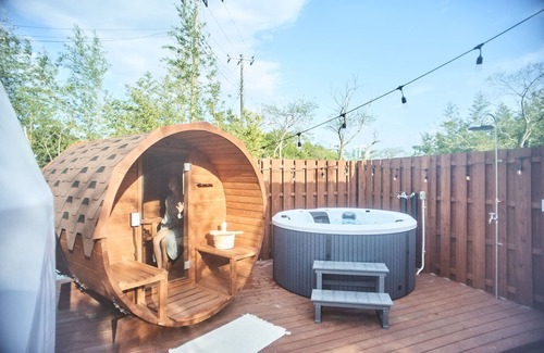 No, esta 完全貸切/サウナ&ジャグジー/竹林プライベート空間/海徒歩5分/アウトドアステイホテル/HERMiT ichinomiya(ハーミットいちのみや)ペット可 no tiene piscina. Vea los detalles sobre la disponibilidad de piscina interior o privada y otras instalaciones.