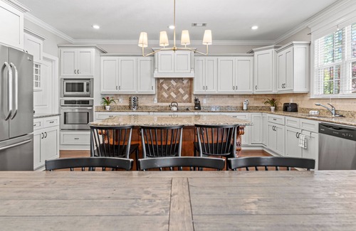 Este alojamiento de 6 dormitorios y 3.5 baños cuenta con chimenea y aire acondicionado. El cuarto de baño incluye un secador de pelo, toallas y papel higiénico. La cocina está equipada con horno, placa de cocina y lavavajillas, además de cafetera y tetera, microondas y utensilios de cocina. Y no tendrás que llevarte ropa de más, porque podrás aprovechar la lavadora y la secadora.