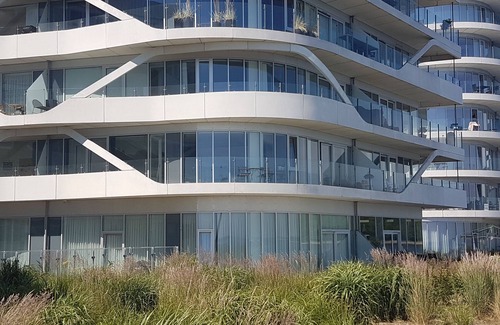 Aquí puedes disfrutar de la fresca brisa del mar. Una vez que haya estacionado su automóvil o bicicleta en el sótano, puede tomar un elevador directamente a la puerta principal. En la entrada, será recibido por la vista única que solo unos pocos apartamentos pueden ofrecer. En el pasillo hay un buen espacio para ropa de calle y teléfono con pantalla de TV. Amplia y acogedora sala de cocina en conexión abierta con sala de estar. Los arquitectos del edificio de 3XN diseñaron una elegante cocina en la cocina / sala familiar.