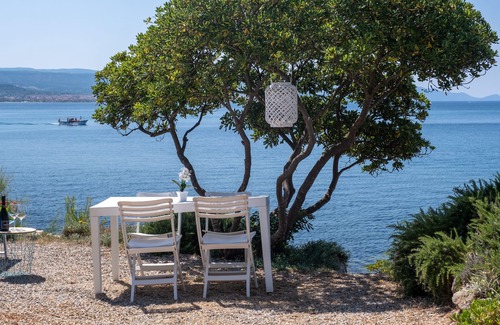 Hermosa villa frente al mar es perfecta para familias o parejas de hasta 8 personas, dislocada en la casa principal y una dependencia elegante y confortable. La casa principal le ofrece 3 dormitorios y un baño en el piso superior y un pequeño baño secundario, cocina y una sala de estar luminosa. En el jardín, la acogedora dependencia con un dormitorio, un baño y un hermoso salón abierto y cocina con comedor. zona. La villa está rodeada por un gran jardín con barbacoa, con entrada privada a la playa.