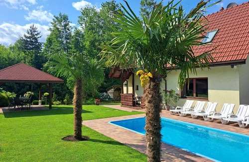 Escape to a charming 3-bedroom house in Kopytówka. This terrific property features 3 full beds, 2 twin bed, 2 bathrooms with a shower and bathtub, and a cozy living room with a sofa bed. Guests can enjoy soothing AC, a hairdryer, iron, and heating during their stay. We're happy to assist with any questions while you stay at our house.
