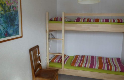 Bright, newly renovated 3 ½-room apartment (64m2) on the 2nd Floor in Huus Horbütze with large sunny balcony and top views. Modern kitchen with large dining table, open to the living room. 2 bedrooms: 1 bedroom with double bed, 1 bedroom with bunk bed. Shower / WC, TV, Wi-Fi. Parking, Non smoking, no pets. Quiet, yet centrally located and easily accessible in winter.