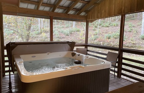 Cabin with Hot Tub Firepit and Fireplace near waterfalls, wineries on 1.25 acres | Cabina en Murphy