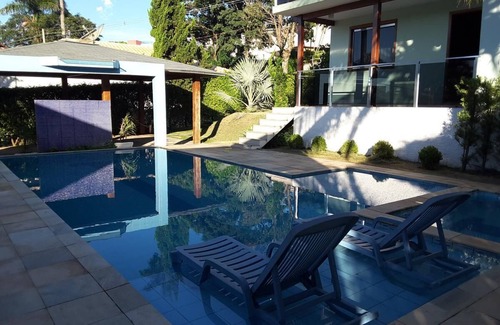 La propiedad tiene 1000 m2 de área, 487 m2 de construcción. Las suites cuentan con amplio espacio y balcón, cocina completa con todos los utensilios, despensa, sala de televisión, sala de estrellas, baño, lavandería, garaje cubierto, piscina, sauna, barbacoa, terraza y un hermoso jardín. Una de las suites está equipada con un jacuzzi (tarifa de uso). Tenemos una lancha rápida con capacidad para 12 personas para dar un paseo en el lago de Furnas (servicio por separado). Espero tu reserva.
