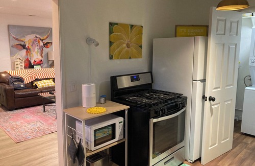 Este alojamiento de 2 dormitorios y 1 baño cuenta con una sala de estar, aire acondicionado y escritorio. El cuarto de baño incluye un secador de pelo, toallas y papel higiénico. La cocina está equipada con horno, placa de cocina y frigorífico, además de cafetera y tetera, hervidor eléctrico y microondas. Y no tendrás que llevarte ropa de más, porque podrás aprovechar la lavadora y la secadora.