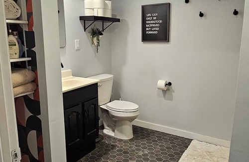 Welcome to our cozy, converted garage studio-a unique and comfortable space located just behind a quiet, family-owned business. Ideal for travelers seeking a budget-friendly stay, this private studio has been thoughtfully renovated to offer modern, minimalist style with all the essential amenities.