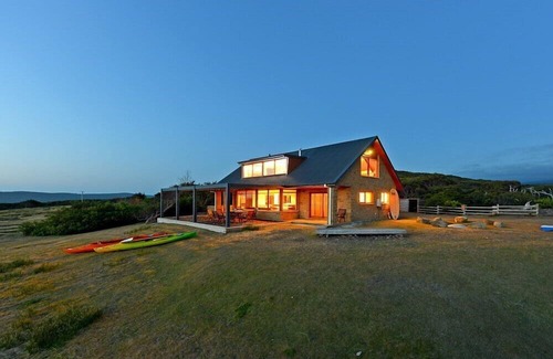 Cloudy Bay Villa offers visitors a unique coastal hideaway experience on secluded South Bruny Island. This spectacular two-story retreat on a gentle rise over Whalebone Point presents some of the best sea views in Tasmania.