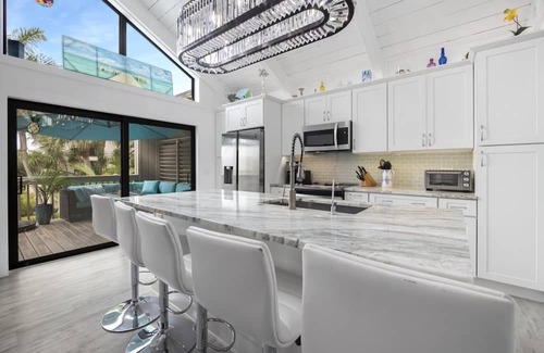 The open kitchen spanning into the living room ensures you and your guests are never far apart. Our hot-tub, bbq grill, outdoor shower, fireplace and seating for outdoor gatherings make certain you and your guests make the most out of your vacation stay.