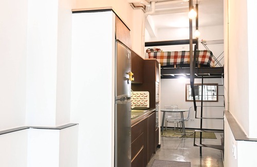 Esta vivienda presenta un atractivo estilo industrial, con elementos de diseño que evocan una estética moderna y funcional. El espacio cuenta con techos altos y detalles arquitectónicos como vigas expuestas, que aportan un aire de loft urbano.La cama doble se encuentra en un mezanine, un nivel elevado que optimiza el espacio y permite aprovechar mejor la altura del techo. El acceso a esta área se realiza mediante una escalera de diseño contemporáneo, añadiendo al encanto industrial del lugar.El baño tiene un plato de ducha moderno, con una mampara de vidrio transparente y accesorios cromados. El uso de azulejos en tonos neutros complementa el estilo industrial, mientras que el lavabo suspendido y el espejo sin marco aportan un toque minimalista.En el área del comedor, hay una mesa con capacidad para cuatro personas, acompañada de sillas de diseño sencillo pero elegante. Este espacio fluye hacia la cocina integrada y el salón, proporcionando un ambiente abierto y sociable. La cocina está equipada con electrodomésticos modernos y gabinetes de estilo industrial, El salón, además de contar con un cómodo sofá cama para invitados adicionales o momentos de relax, ofrece espacio suficiente para la convivencia. Una característica destacada es la entrada independiente, lo que proporciona privacidad y un acceso directo a la vivienda sin pasar por áreas comunes. En resumen, esta vivienda es ideal para aquellos que aprecian un diseño industrial, funcionalidad y espacios bien distribuidos con un toque contemporáneo.Esta vivienda presenta un atractivo estilo industrial, con elementos de diseño que evocan una estética moderna y funcional. El espacio cuenta con techos altos y detalles arquitectónicos como vigas expuestas, que aportan un aire de loft urbano.La cama doble se encuentra en un mezanine, un nivel elevado que optimiza el espacio y permite aprovechar mejor la altura del techo. El acceso a esta área se realiza mediante una escalera de diseño contemporáneo, añadiendo al encanto industrial del lugar.El baño tiene un plato de ducha moderno, con una mampara de vidrio transparente y accesorios cromados. El uso de azulejos en tonos neutros complementa el estilo industrial, mientras que el lavabo suspendido y el espejo sin marco aportan un toque minimalista.En el área del comedor, hay una mesa con capacidad para cuatro personas, acompañada de sillas de diseño sencillo pero elegante. Este espacio fluye hacia la cocina integrada y el salón, proporcionando un ambiente abierto y sociable. La cocina está equipada con electrodomésticos modernos y gabinetes de estilo industrial, El salón, además de contar con un cómodo sofá cama para invitados adicionales o momentos de relax, ofrece espacio suficiente para la convivencia. Una característica destacada es la entrada independiente, lo que proporciona privacidad y un acceso directo a la vivienda sin pasar por áreas comunes. En resumen, esta vivienda es ideal para aquellos que aprecian un diseño industrial, funcionalidad y espacios bien distribuidos con un toque contemporáneo.