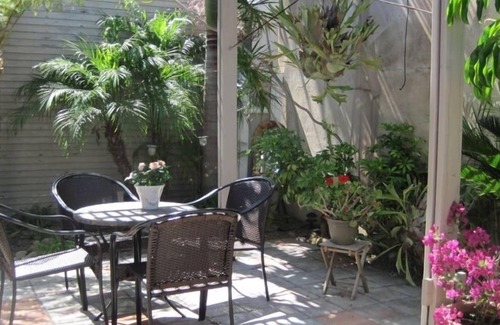 Visite el barrio semanal Farmers Market y preparar su propia fiesta locavore en la cocina bien equipada y cenar en el privado, romántico, jardín tropical. Esta linda casa de un dormitorio tiene un baño con encanto que cuenta con los gabinetes artesano original, gran ducha y bañera.