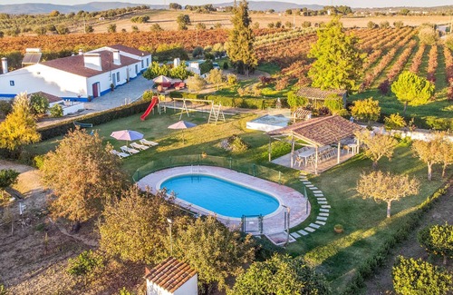 Monte típico alentejano de finales del siglo XIX con 12 cuartos en un área total de 450m2 de área cubierta en propiedad de 70. 000m2.
