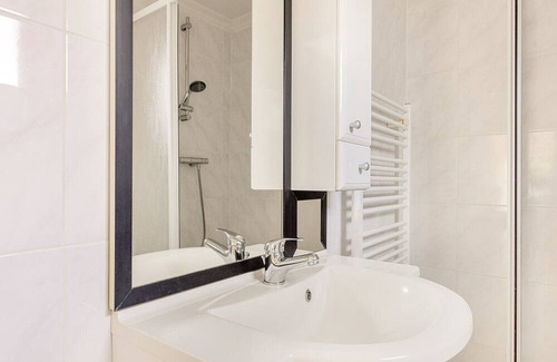 The chalet has three bedrooms. In two bedrooms there are two single beds. The third bedroom has a bunk bed. The bathroom has a shower, sink and a toilet.