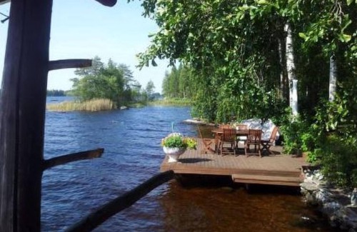 70 km al sureste de Kuopio. El lago Unnukkajärvi a 5 m, dura playa lijada, profundo y somero, dos muelles, 2 botes propios. Cabaña de troncos de dos plantas de 2006, en la planta baja el recibidor, cocina espaciosa, dormitorio con cama doble, lavadero y cuarto de ducha, ducha a ras del suelo, WC, veranda acristalada (15 m²) con mesa de comedor para 10 personas, terraza. En la planta superior un salón con TV, 2 nichos con cortinas, cama doble en cada uno, 2 nichos con cortinas con 2 camas en cada uno. En la planta superior un WC que funciona solo con líquidos. En la cabaña hay aspirador central. Tanto el pasillo como el cuarto de ducha tienen la calefacción por suelo radiante. Sauna independiente a orillas de lago, donde hay un cuarto con chimenea y sofá-cama. A la sauna llega solo el agua fría. Casa del patio con un dormitorio y cochera. El dormitorio se puede usar solo de mayo a octubre. En el cuarto hay una cama doble, calefacción eléctrica. En el patio también hay un WC exterior Biolan. El agua llega del pozo y es rica en hierro, por eso se recomienda traer el agua potable. El propietario trae un bote de agua para los clientes al inicio de la estancia. ¡Nota! El número máximo de personas es 10, aunque hay camas alternativas en uso en verano. Parcela nivelada y natural con pinar, el patio también tiene el césped y parterres. En la línea de la playa hay piedras. Hay un patio en la playa espaciosa con su propio juego de comedor y parrilla a gas. Conexión inalámbrica a Internet (WI-Fi) en la cabaña. Al lado de la sauna hay una bodega con bebidas y comestibles, lugar de hoguera, caja para el ahumado de pescado y tumbona. Excelentes aguas de pesca enfrente de la villa. Servicios de Leppävirta a 17 km (Vesileppis spa, ski tube, Konnus Golf, restaurantes), Varkaus a 28 km, Spa Hotel Rauhalahti a 70 km.