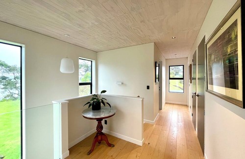 This exclusive Waterfront Escape in Mangawhai Heads is perched on the edge of a tidal harbour. Built in 2023, this architecturally designed home offers an unparalleled coastal retreat with beautiful views overlooking the Estuary. Whether you're seeking relaxation or inspiration, watch the tide ebb and flow at this exclusive property and enjoy its peaceful surroundings making it an idyllic getaway.