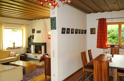 Casa "Kaiserhäusl", 900 m s.n. m.. A 900 m del centro de Bischofsreut, a 20 km del centro de Freyung, a 57 km del centro de Passau, en una pendiente. Privado: terreno en estado natural 1'700 m2 con árboles, pradera. En el inmueble: sauna. Trastero a disposición. Aparcamiento (para 3 coches) junto a la casa, garaje individual. Supermercado 1 km, piscina 20 km. Tren de montaña 45 km, telesquí 10 km, pista de esquí de fondo 500 m.