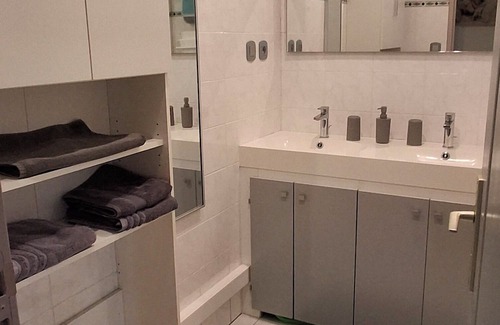 While you're here, you can enjoy all the comforts of home and more, including WiFi and air conditioning, as well as an ironing board and towels. Other amenities include a travel crib, soap, toilet paper, and a hair dryer.