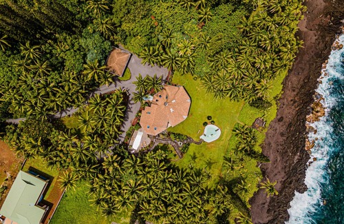 🌴 Gorgeous Oceanfront Luxury Retreat 🌊 private pool, black sand beach, pond, AC | Casa en Pahoa