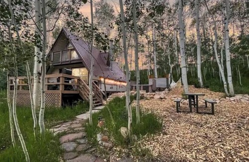 Serene A-Frame Home in the Aspens w/Hot Tub, Outdoor Shower, just outside of Park City, UT We invite you to stop, relax, and breathe in the crisp mountain air. This is what memories and vacations are made of. Step away for just a moment from the hustle and bustle of everyday life. Relax and unwind in an Adirondack chair on the porch as you bask in the serenity of verdant foliage, soak under the stars in a private hot tub, stretch out in the hammock, or spend a starry night next to the fire pit sharing stories with those you love. Listen to the birds and the wind as it whispers through the leaves of the aspen trees. We invite you to experience all of these in our classic A-frame tiny home, meant to offer you a little bit of outdoor paradise and designed as a place of peace and relaxation where memories and new experiences are created and cherished. One of the greatest elements of this property is that it allows you to experience what off-grid living can be like with only minimal sacrifice. PLEASE READ ALL THE WAY THROUGH BEFORE BOOKING! Read the entire section below before making your reservation, so there are no surprises. It is important to note that you will be staying in the Alpine wilderness, which requires a certain kind of respect and understanding of a few key things. • You will be driving and parking on a gravel/dirt road and driveway. The road out to the home is mostly paved, until the last .75 of a mile, at which point it becomes unpaved. There are rustic stone steps from the driveway up to the house, so if you are bringing heavy items on your trip, you will have a bit of a workout. The good news is that our hot tub is the perfect place to restore tired muscles. • You are staying in the mountains. If you have any heart problems and/or coming from sea level, you will notice a difference. The weather is typically mild here but is also unpredictable. We do not have central AC in our little home; however, if air is allowed to flow freely through open windows, you should stay comfortably cool in the main living area downstairs, and by the time you go to bed, the upstairs should be cool as well. We also provide a portable AC in the hottest summer months. Spending some time relaxing in the hammock or reading on the porch might be just what’s in order while you wait for the upstairs rooms to cool off. • Hot water is provided with a point-of-contact tankless water heater, and while this means that you will have an endless supply of hot water, you will need to be careful about the volume of hot water you run at any given time. In other words, you will not be able to run a full bath, the dishwasher, and the washing machine all at the same time without overloading the water heater. • Our little home is outfitted with a septic tank, so you will need to follow these rules: use garbage disposal sparingly, and no harsh chemicals, feminine products, sanitary wipes, or other items are to be disposed of or flushed down drains. • Internet/Wi-Fi is provided, but it should be noted that cell reception is spotty on the way up to the cabin. We do provide a satellite landline for your convenience, should you need it, and while we do not provide cable, you should be able to stream your favorite services most of the time while staying with us. • Our charming and classic wood-burning stove is intended to be used for ambiance, and pellets are provided for use in the basket. Please note that if you use the stove, we require that you clean it out before your departure. • You will be enjoying a stay in the wilderness, and you should be aware that with that comes alpine critters including, but not limited to squirrels, foxes, bats, owls, eagles, deer, turkeys, bunnies, coyotes, snakes, and moose. So, please use caution and always enjoy these beautiful animals from a distance. But feel free to send us pictures if you see any! #HighAltitudePropertyManagement • If you aren’t a bug person, our place may not be for you. While this area is known for having fewer insects than many other areas of the US, you are likely to encounter a few while staying at our A-frame. • There is a good possibility that during the day and night you will hear birds and other woodland creatures as they go about their daily lives. We invite you to sit quietly at some point during your stay and just take it in, in all its glory. This is what nature sounds like. Enjoy the melody! Everything listed above is what makes our Gunn Powder Haus so unique and amazingly different from other places. We are hopeful that you will find that these are even more of a reason to stay a while with us. A few more reasons you’ll never want to leave Gunn Powder Haus: • Full living area with smart TV (no cable access), DVD player, charming wood-burning stove, and high-quality American Leather queen sleeper sofa • Full and very well-equipped kitchen with refrigerator, dishwasher, full stove, microwave, coffee maker, pots and pans, dishes, etc. • Dining seating for 2 at the kitchen island and 4 more at the dining table • Full bathroom inside with a soaking tub that includes a handheld shower head (NOTE: There is no shower in the indoor bathroom. To shower, you will need to use the outdoor shower.) • Compact all-in-one washer/dryer (great for small loads only) • Satellite internet (30 GB) • Nectar King bed upstairs • Full bed in shared space upstairs • Work desk for those who just can’t leave work behind (Psst…don’t bring your work) • Smart TV in the room with the King bed • Lots of books for the quiet moments • Full set of linens provided, including hot tub towels • Full-size Public Goods soap amenities • 6’ x 15’ front porch with seating for relaxing and dining space for 4 • Propane BBQ grill • Private 3- or 4-person hot tub (3 adults or 2 adults and 2 children) • Outdoor shower (NOTE: this will not be available through the winter, starting on October 15) • Relaxing hammock • Propane firepit w