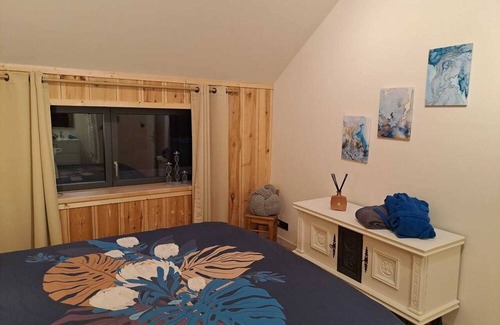 The house features central heating, ironing equipment, air conditionning, a dressing room, a jacuzzi, cleaning products and a desk.