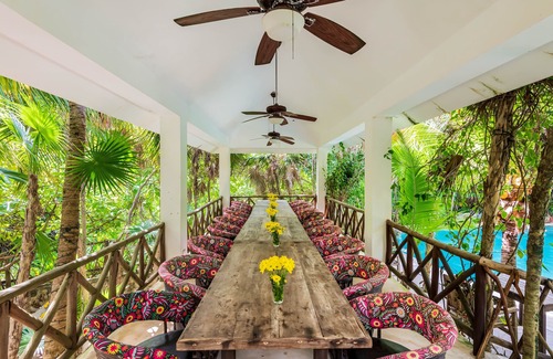 Esta villa de propiedad familiar, perfectamente ubicada a lo largo de la playa de la Riviera Maya, ofrece impresionantes vistas del océano y la vida silvestre, y cuenta con una playa privada, piscina privada climatizada y exóticas áreas al aire libre como el jardín de coco para brindarle comodidad y conveniencia.