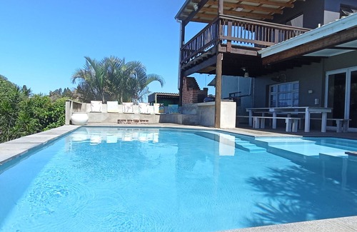 Perfect for families or groups, this stylish beach house features 8 en-suite bedrooms, a full kitchen plus kitchenette, open plan living with high ceilings and 2 Smart TV's. Enjoy outdoor living with a poolside braai area with a stunning sea view. Just a short walk away from the beach. It's your ideal getaway