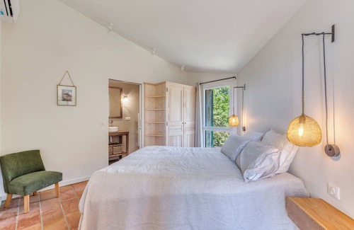 With its free-form swimming pool, you can relax and enjoy the sunny days in complete tranquillity. The large, shaded terrace is perfect for al fresco dining, and offers panoramic views of the Luberon, an idyllic setting for your moments of relaxation.