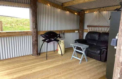 The cabin has a small kitchenette with an electric hob, small oven, kettle, toaster, fridge, and a Nespresso coffee machine. The cabin is fed water via a mountain spring and is safe to drink. There is a small bathroom with a sink, toilet, and a shower which uses gravity instead of a pump, so the only noise is the water. The cabin has one king size bed which overlooks the lake. There is no TV but there is a very good Wi-Fi connection. The outdoor covered area has a two seater reclining couch, a gas barbecue, and a hammock which can be mounted in two positions.