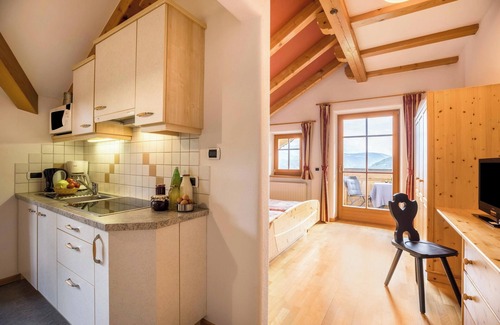 El Oberplunerhof se encuentra en Kiens, en el corazón del Tirol del Sur, a solo 15 minutos de la estación base de la zona de esquí Kronplatz, ideal para quienes buscan actividades o tranquilidad. Alejados del pueblo, disfrutáis de una ubicación tranquila con vistas al valle y al río, rodeados de prados alpinos y bosques. El apartamento "Bruneck", en la primera planta, tiene capacidad para 2 personas y dispone de cocina totalmente equipada, zona de estar y dormitorio con cama doble, baño con ducha, WC y bidé, TV vía satélite e internet. Dos balcones os invitan a relajaros.
