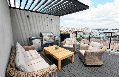 New and luxurious apartment with 2 bedrooms and 2 full bathrooms. Located in one of the best neighborhoods in Querétaro. Enjoy a spectacular view from the terrace while you spend time with your friends and family making roast meat on the new multipurpose grill.