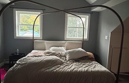 Plaistow is waiting for you at this marvelous 4-bedroom house. With 2 queen beds, 1 king bed, and even a crib, this cozy retreat is perfect for families or groups of friends. Enjoy the convenience of AC and heating, along with 2 bathrooms featuring showers. Our place is equipped for short stays.