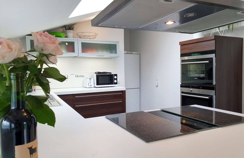 "Sternenhimmel", casa pareada 3 estancias 111 m2, en la planta baja. Con mobiliario moderno y de buen gusto: salón-comedor 36 m2, grande con TV satélite (pantalla plana). Salida a la terraza. 1 dorm. 20 m2 con Vestidor con 1 cama doble (160 cm, 200 cm de longitud), ducha/WC y bañera de hidromasaje. 1 dorm. 14 m2 con 1 cama doble (140 cm, 200 cm de longitud). Cocina abierta 14 m2 (horno, lavavajillas, 4 placas de vitrocerámica, hervidor de agua eléctrico, microondas, congelador, cafetera eléctrica, olla a vapor) con barra americana. Salida a la terraza. WC separado. Terraza grande 40 m2. Muebles de terraza, barbacoa. El alojamiento dispone de: Internet (Wifi, gratis). A tener en cuenta: casa para no fumadores. Detector de humo.
