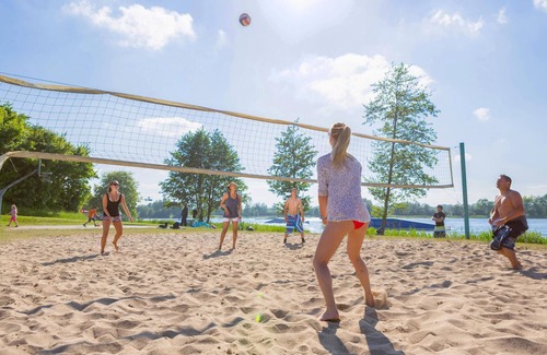 La ciudad de vacaciones ofrece actividades de ocio para toda la familia. Salga directamente de su casa de vacaciones a la hermosa playa con su bañador o alquile un SUP para remar por el lago. Las instalaciones de esquí acuático y wakeboard del lago Rumpelsee ofrecen mucha acción. Aquí podrá (previo pago) dar sus primeros pasos en el esquí acuático como principiante o perfeccionar sus técnicas y saltos como un auténtico profesional. Un parque infantil, una pista de vóley-playa y rutas de senderismo completan la oferta.