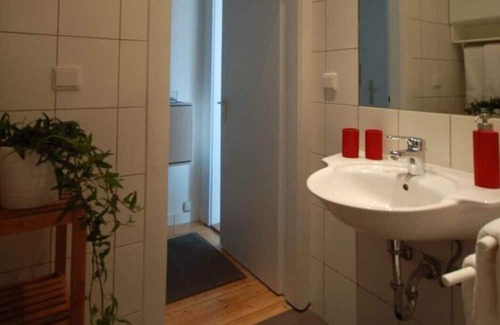 The apartment has a very tasteful and cozy bedroom. In addition to a comfortable box spring bed (180cm x 200cm), wardrobe and sideboard there is also an eating opportunity in the room. The modern and fully furnished kitchen is equipped with a refrigerator, stove, oven, scytheo, kettle, toaster and everything you need for cooking and self -catering. The bathroom has a shower, hairdryer and towel radiator. Internet connection, TV, music system with connection options for MP3 players and USB stick as well as ironing board and iron are of course available.