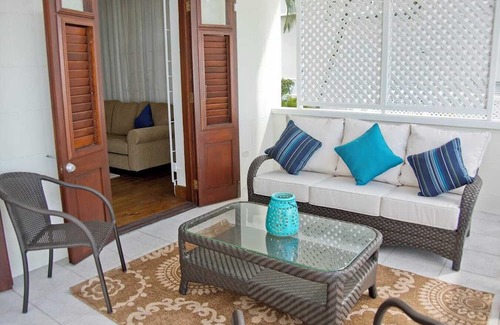 The property features beautiful hard wood floors, high airy ceilings throughout and ceiling fans in the living/dining and kitchen areas which together with the cool breezes off the Caribbean Sea makes the villa cool and relaxing.