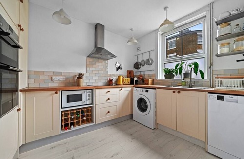Prepara una comida casera en la cocina, equipada con placa de cocina, frigorífico y lavavajillas, además de microondas, utensilios de cocina y tostadora. Conéctate al wifi, o relájate frente a televisión. No necesitarás llevarte mucho equipaje, porque hay acceso a una lavandería. Otras comodidades de este alojamiento de 2 dormitorios y 1 baño incluyen una chimenea, una tabla de planchar y calefacción.