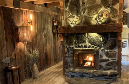 Photos cannot convey the utter charm and coziness evoked by the woodsy cabin-like architectural detailing, which features barn wood walls and raftered ceilings throughout. Situated at the base of Mt Sutton, the location is walking distance to the slopes, yet set on a private street that predates many of the more modern complexes now peppering the hill.