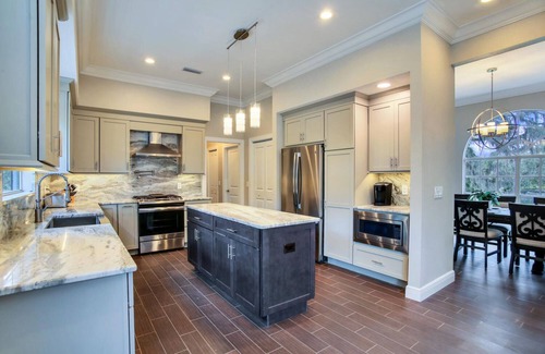 LA CASA - Mientras conduces hasta esta casa te sorprenderá su magnitud. Esta casa de 5 dormitorios y 4. 5 baños tiene techos abovedados en toda la planta baja y está decorada con buen gusto en un tema contemporáneo de Florida.
