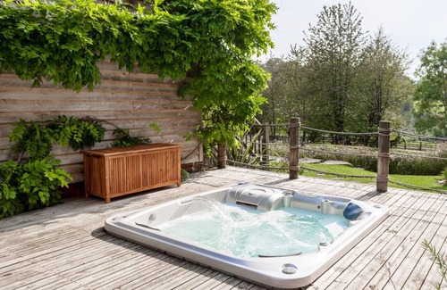 Relájate en el jardín o tómate algo en la bañera de hidromasaje de esta casa de vacaciones. En cuanto al interior, puedes disfrutar del wifi y de la televisión.