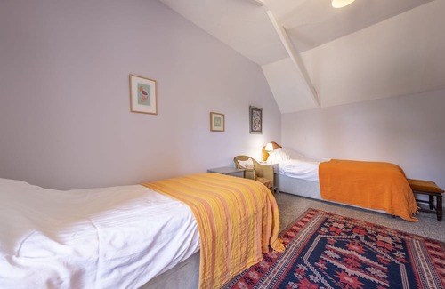 On the first floor, The Old Coach House offers three quiet, traditional bedrooms that are well-served by two bath/ shower rooms. Two of the bedrooms feature king-sized beds, with the third bedroom offering adult twin beds. The nearby master bathroom contains a large bath and electric shower overhead. For further convenience, an en suite shower room is connected to the twin bedroom.