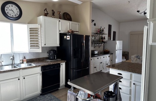 Al instalarte en este alojamiento de 3 dormitorios y 2 baños, encontrarás una sala de estar, una zona para barbacoas, chimenea y aire acondicionado. El cuarto de baño incluye un secador de pelo, toallas y jabón. La cocina está equipada con horno, placa de cocina y frigorífico, además de cafetera y tetera, hervidor eléctrico y máquina de hielo. Y no tendrás que llevarte ropa de más, porque podrás aprovechar la lavadora y la secadora.