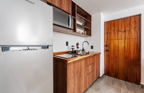 Disfruta cómodo departamento con baño completo. Con cama matrimonial. Encontrarás una cocina espaciosa y totalmente equipada con todo lo que necesitas para cocinar una comida deliciosa. Adicionalmente tendrás un comedor para disfrutar de todas las comidas.