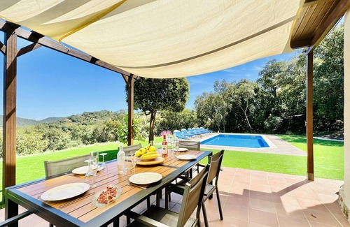 Casa de ensueño con piscina privada, barbacoa, terraza con comedor exterior, wifi, naturaleza y maravillosas vistas a las montañas. Se encuentra a tan sólo 15 minutos en coche de la playa y hay acceso a las mejores playas y calas de la Costa Brava.